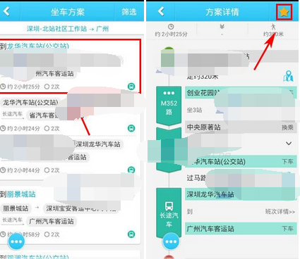2)然后选择搭乘方案,进去之后点击右上角的【五角星】就可以了(如下图)