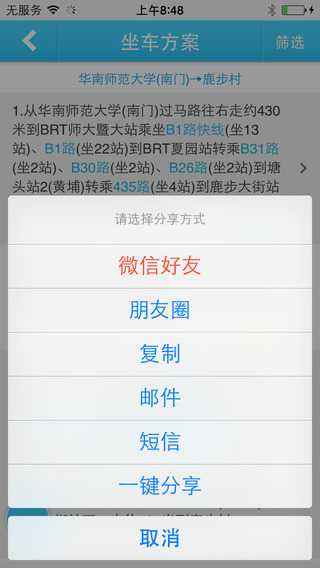 2.坐车方案可以多渠道分享到微信好友,朋友圈和微博啦!