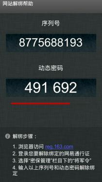 登录reg.163.com,输入手机将军令上的序列号与动态密码解绑: