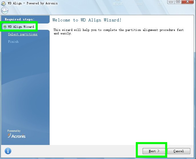 7,在弹出的“WD Align Wizard”向导页面时,点击“Next”进行下一步操作。