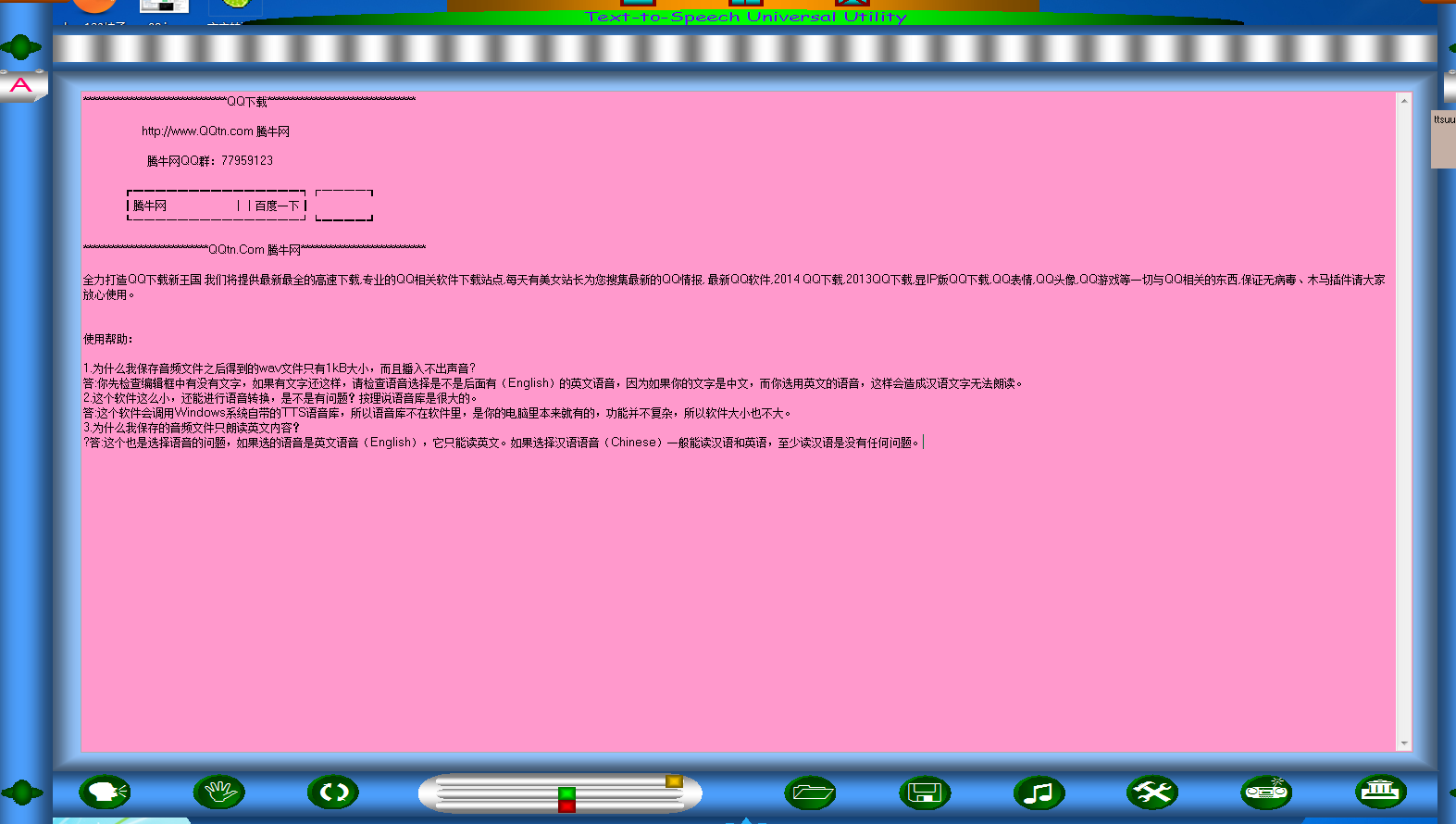 TTSUU (Text to Speech Universal Utility) 是一款ttsuu文本转语音的软件,程序界面新颖独特,它能够把任何文本内容转换成语音,不仅能把文字用声音读出来,还能把文字转换成wav或者mp3语音文件放在手机或者其它任何播放器里面听,更强大的是在生成语音文件的同时还可以高速生成LRC同步歌词字幕文件,这样在播放的时候不仅可以听到,而且同时可以看到同步显示的文本内容了。TTSUU能够通过切换语音引擎、重复朗读、放慢或者加快朗读速度等功能帮助您学习外语,这无异于一部功能齐全的软件复读机。TTSUU除了能阅读文本文件外,还能让您从任何电子文档中拷贝任何感兴趣的文本内容,并以漂亮的随机彩色标签的方式停靠在主界面的左右两根柱子上供您随时编辑、阅读、或者进行语音文件转换,是工作、学习、听小说,校对、音效素材制作等不可多得的好帮手。