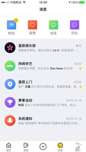 “拜师学艺”功能模块延承厨师技艺传承中传统的“师带徒”模式,将拜师收徒的场景搬到互联网应用平台,让渴望技艺成长的厨师从业者以及厨艺爱好者能够轻松连接全国优秀大师,通过“查阅收徒条件——拜师申请——评估考察——线下互动——通过考察——线上点对点指导——课程分享”等系列动作实现拜师学艺,而大师也可更精准地甄选出优质徒弟,从而让“师带徒”模式更加多元化,让厨师技艺传承更加便捷、广泛。