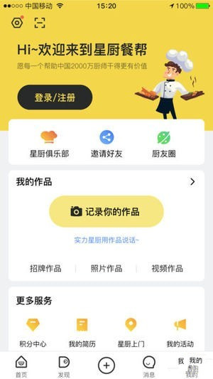 用户登录注册;用户可以加入星厨俱乐部,成为星厨餐帮一员。