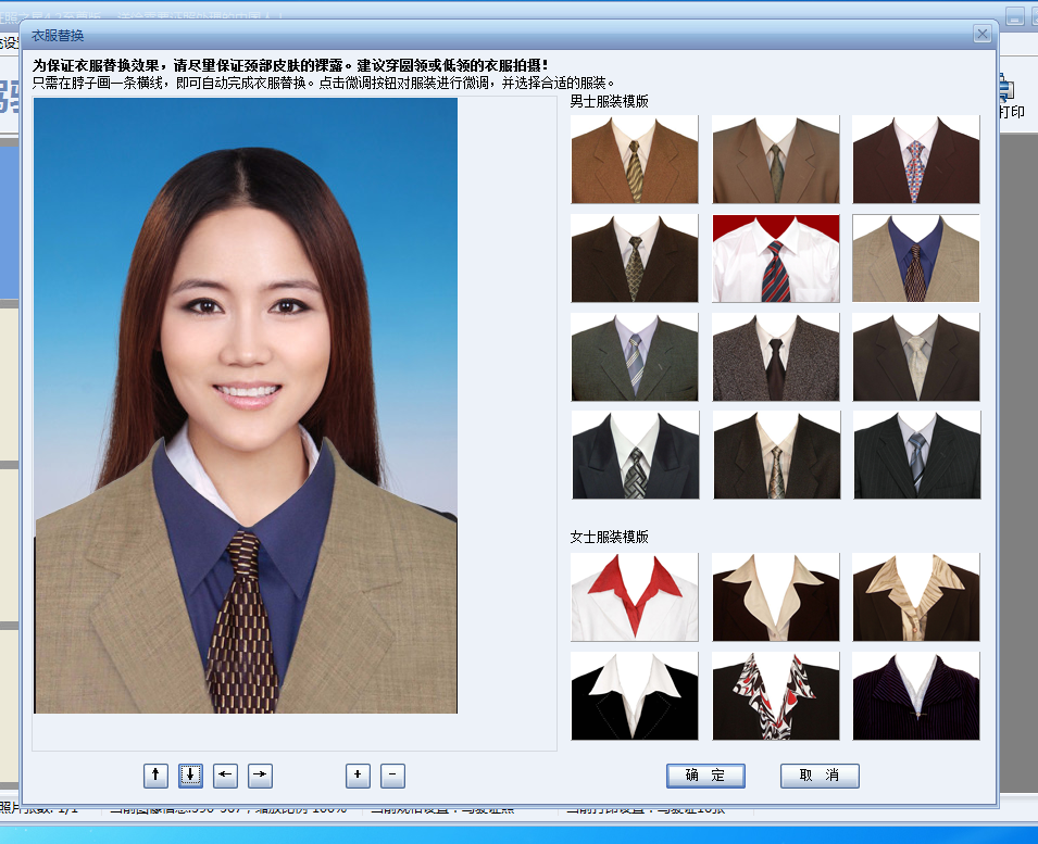 在实际证件照制作过程中,用户会遇到各种实际的需求。例如,在给某些单位拍摄证件照过程中,单位要求穿规定的职业装拍照,但是有的员工却穿着休闲服装,怎么办呢?那么只有两种办法,要么让该员工换好职业装再来拍照,要么就是后期制作进行处理。