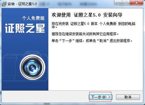2、点击证照之星安装程序,然后在安装界面轻击下一步。