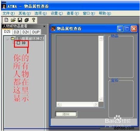 3、然后在“人物或物品查看”栏中就会出现你的所有人物。我这里是一个叫DD的nec