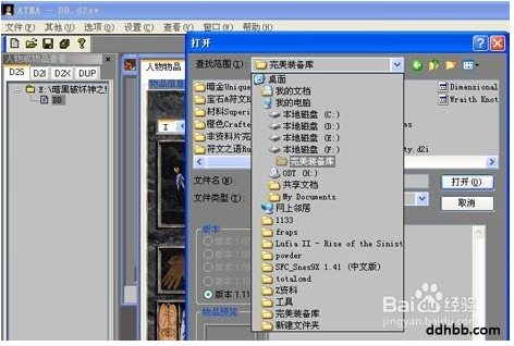 2、点击菜单栏的“文件”-“读取文件夹”,选择你的暗黑目录下的存档目录。然后确定。