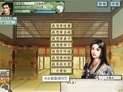 先搞齐:剑术3级,一个7级茶具或更好的,忍术3级(可有可无)然后成为浪人调查好哪个大名实力最强(量力而行),进入他的都城,混进"城"内,这时就需要忍术3级了潜入了,当然,也可以装商人混进去,见到大名后(有时见不到,他太忙了,只要隔几天就行),首先与他交手(同样,有时不行,他有事,隔几天就行),必须赢他,这时知道剑术3级的用处了吧,然后请他喝茶,就是茶会,必须让他满意,7茶具就有用了,最后选择"仕官",他100%会同意!