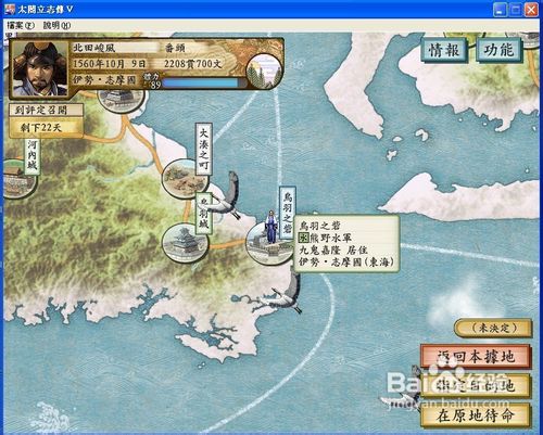 5、南岸需直接可攻击到毛利,并至少统一了播磨,最好是备中国归属毛利