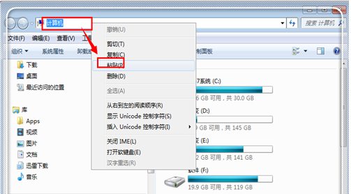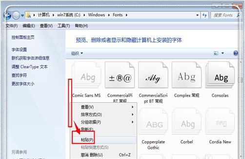 返回到刚才打开的windows字体库,使用“ctrl+v”或者是右键点击空白处,选择“粘贴”,粘贴字体。