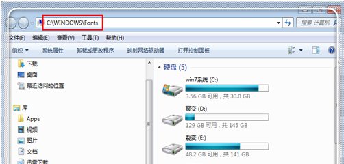 粘贴之后点击“回车键”,进入到windows字体库中。