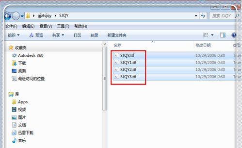 进入之后,找到这里的所有的“SJQY.ttf”,文件,全部选中,使用“ctrl+c”复制这些字体。