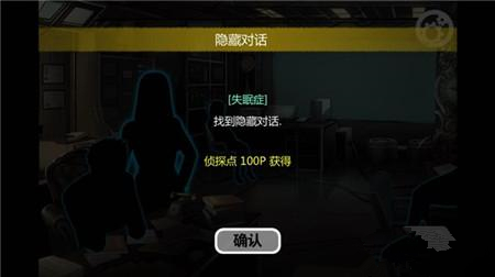 进入游戏我们来到的是男主人公的侦查所,里面可以看到四个只有阴影的人物,我们先点击最左边的那个阴影,交流后可以获得隐藏对话“失眠症”。