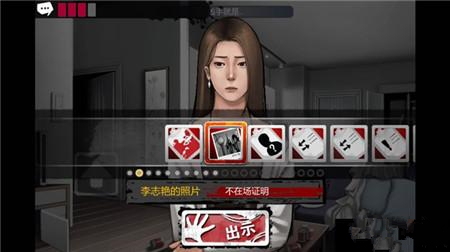 然后我们可以选择指证凶手李志艳,她还会反驳一下,这时我们需要出示证明,记住只有三次机会!先出示闹钟,交谈一下。再出示不在场的证明。