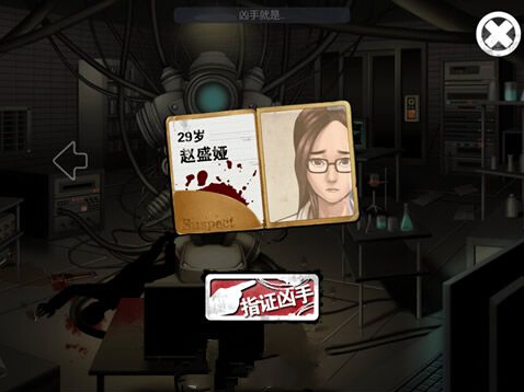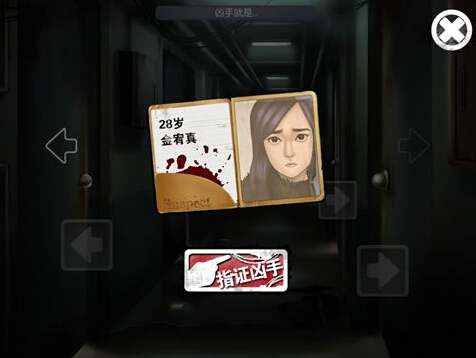8、现在可以指正凶手了,点击“指正凶手”菜单,在里面选择赵盛亚,她就是凶手。这里需要出示四个证据,分别是“赵盛亚的不在场证明”、“湿痕”、“松懈的外壳”以及“被害人金秀澈的信息”还有“徐志泰的出入记录”,而徐志泰是帮凶,至此第二关就通关啦。
