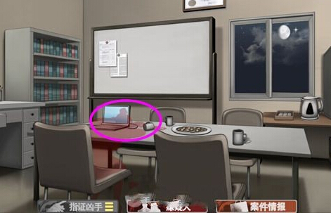 1、首先,进入游戏,进入案发现场之后,发现受害人趴在会议桌子上面。