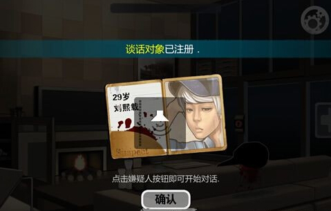 接下来就会知道谈话对象已注册,我们就可以和有嫌疑的两个女的对话,这个地方只需要看着点,但是每个问题都只需要点一次,因为他们也是有耐心的,查看耐心可以再屏幕左上角看!小编提示只要把每个问题都点一次就可以了!