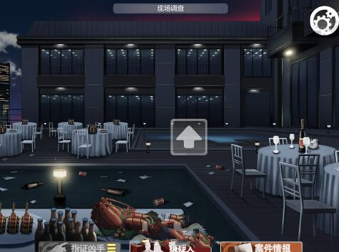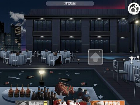 7、重新去找证据。会看到泳池左边有两个比较大的桌子,其中第二个桌子,点击一下,会露出一个酒杯,这个就是案件中的酒杯4了。接下来重新审问李智慧。