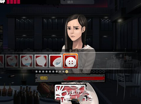 6、然后去询问吴盛熙,直接出示纽扣给她看,至于为什么?细心的朋友应该都发现了,吴盛熙的衣服上,第一颗纽扣下面是空的,这里本来应该是第二颗纽扣的位置。 然后再出示“冰桶”以及“红酒”两个情报,可以得到“丢失”这个情报。最后去审问李智慧,结果李智慧什么都不肯交待,要求主角拿出证据才可以。