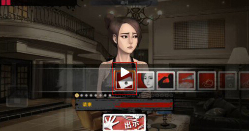 11、开始审问第四名嫌疑人,审问完之后,向第一名女嫌疑人出示请柬。然后侦探会出来说:大概掌握了。