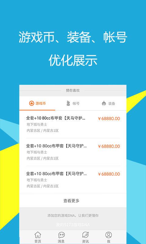 5173游戏交易平台安卓版是由5173公司推出的一款专门为网络游戏提供相关交易服务的移动应用,包括网络游戏帐号交易、游戏币交易等业务,支持数千款网络游戏的点卡充值及游戏币装备的浏览。