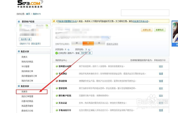 进入“我的5173”后,在左侧菜单栏下面找到“我要卖”的选项.