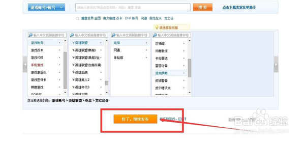 选择好自己需要卖的类别,此处小编举例为出售帐号.选择好了之后点击“好了,继续发布”.