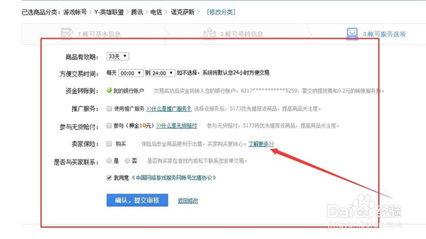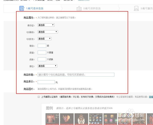 到了这里,就按照要求输入自己出售的帐号信息,包括出售标题,商品图片,商品价格,商品描述等.