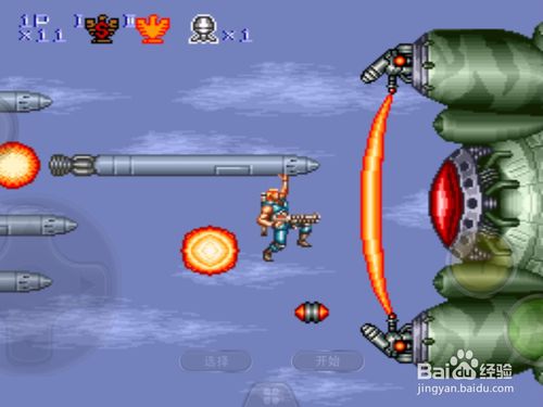第四关boss。第四关的boss是一个飞行器,这个boss难度一般,这一关主要依靠反应能力,boss的攻击一般,但是注意不要从导弹上掉下去。