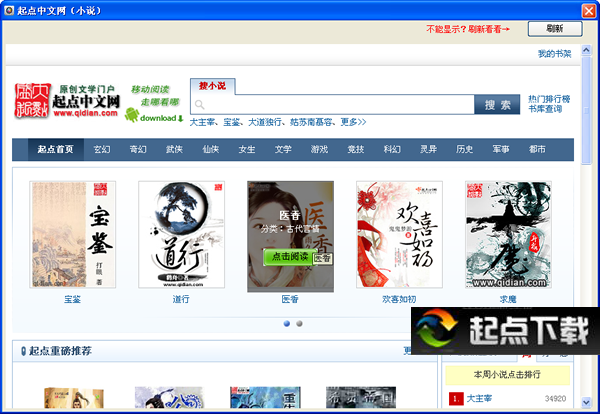 您只需要双击某个喜欢的版块即可显示相应的软件界面如单击起点中文如下: