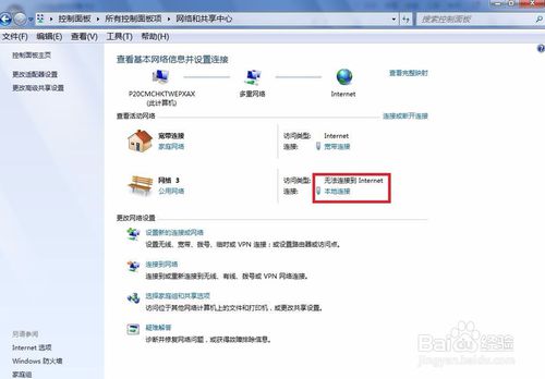 进入“网络和共享中心”再点击“本地连接”