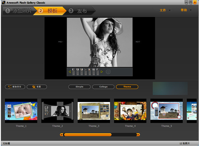 步骤2:选择一个Flash动态模板,并可以添加适当的背景音乐,以丰富内容。