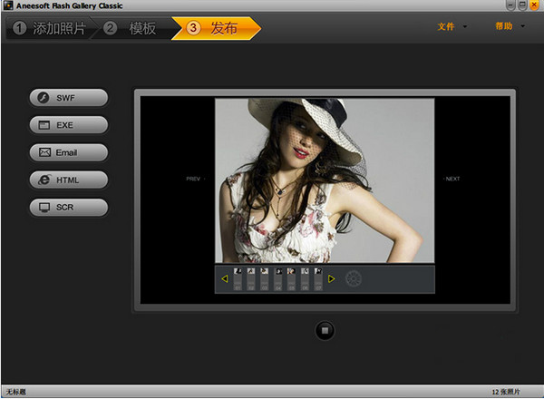 步骤3:保存为SWF,HTML格式或EXE文件,或者使一个窗口发布动感相册屏保。