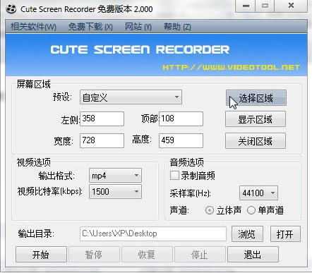 Cute Screen Recorder是一款体积小巧、功能全面的免费屏幕录像工具。可以直接录制屏幕为flv、swf、wmv、mp4文件以便快速上传到网上与朋友分享你的视频。支持全屏录制,自定义区域录制、设定分辨率录制等功能。并且不用学习,界面简单,无需复杂的操作流程,容易上手,易于使用,完全免费!【使用方法】