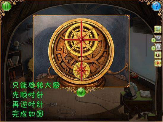 5、回去上楼,找到6个拼图。点击罗盘和机器。找到1个旋钮。