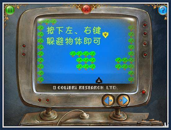 14、左走2步,放入操纵杆,开始谜题(图13).看电视机,开始游戏(图14)拿走红色三角按钮。