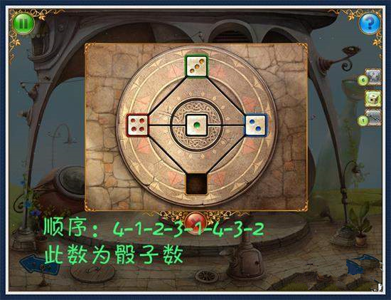 9、左一步,放入骰子,谜题(图25)点击绿色操纵杆,上楼。