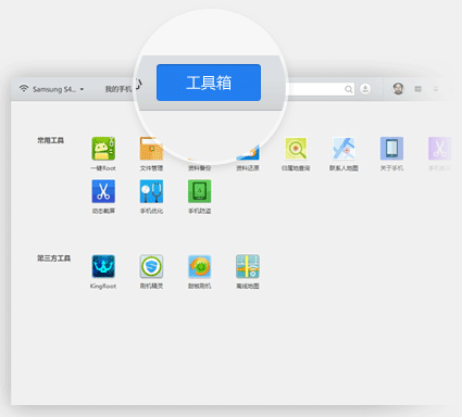 1、用USB数据线将手机与电脑连接,打开应用宝点击“工具箱”