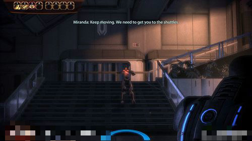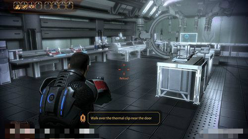 当你看完了靓妞,正准备说点啥的时候你发觉你所在的实验室正遭受攻击。没办法作为宇宙的维护者就这个命~~~某个不知名的势力正准备消灭Shepard。回过神来的Shepard收到了靓妞的指令,依次完成3件事:从房间角上的箱子里拿把手枪,拿到后就可以出门和她汇合。此时她马上命令你掩护自己,防止被爆炸波及。最后她要你拿起地上的弹药,继续冒险。