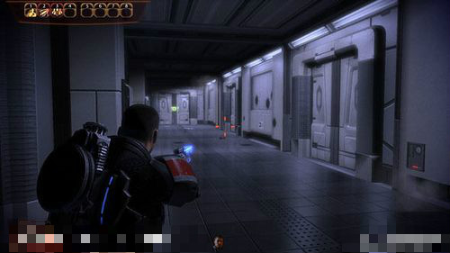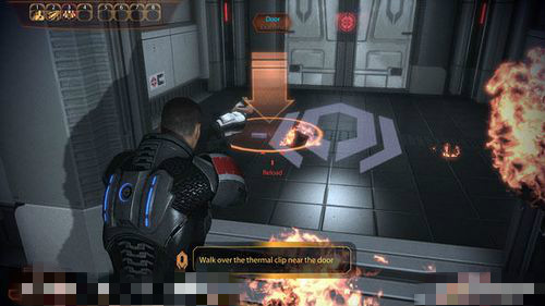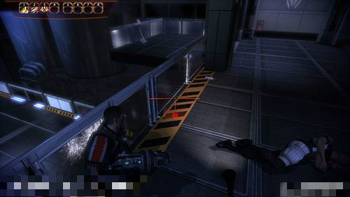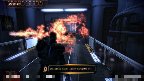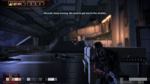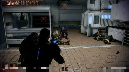 接下来的房间,Shepard将在重生后第一次面对实战,目标很容易干掉所以放心。只是游戏会提示你快跑-掩护等系列动作,第一个目标出现的时候,不要犹豫强J之,然后快冲到它的方向出门通向另一个房间。这里应该可以有子弹可拿。