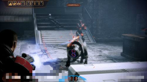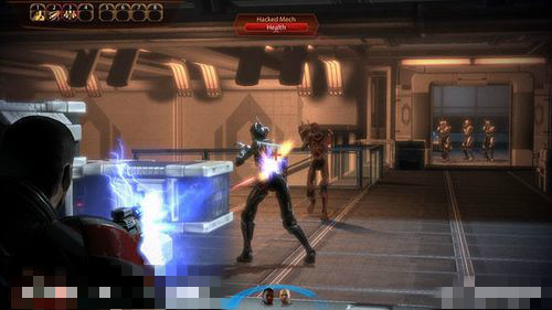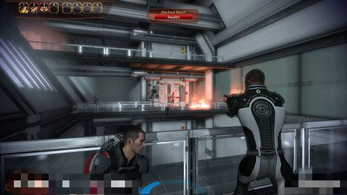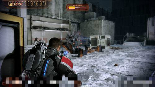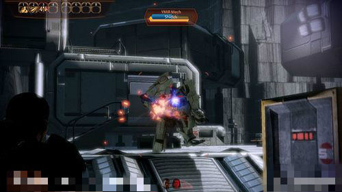 完成了这次大战后可以安全下楼,搜刮点战利品。别管向前去的队友,东西要紧。向前走不久Tali就会通知你,她要打开不远处的门释放一个YMIR机器人让你协助干掉它,Tali的部队快被这个东西灭光了。在开战之前先按照屏幕上的提示,指挥队伍包抄那扇门(这里的目的是为了训练你熟练指挥队伍)。当你布置好队伍后门回爆开,敌人出现。