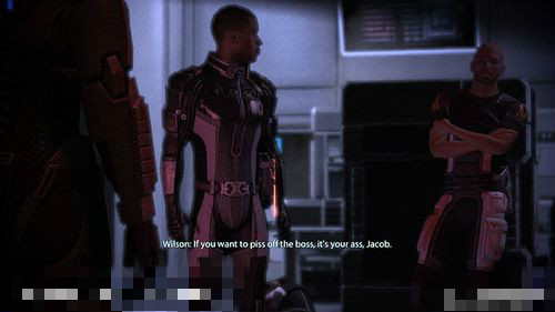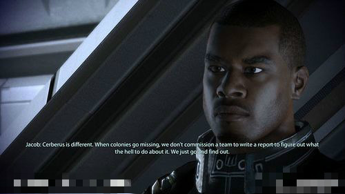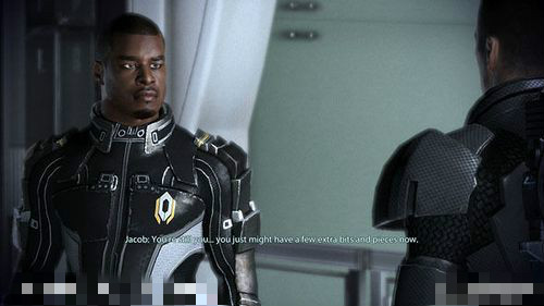 走出办公室后前往另一扇门。这里Shepard遇到另一波敌人的阻击,不过此次会得到点帮助。一个叫Jacob的生化异能者加入了你。Jacob可以使用Biotic能力,配合特能的使用可以让战斗更有威力。这里先随便找个目标使用Jacob的Pull技能,剩下的干掉。大战过后可以和Jacob对话,了解一下究竟发生了什么。顺便提一下Jacob是第一个永久加入的队友。