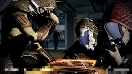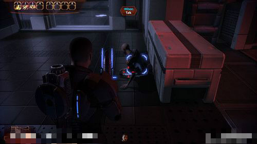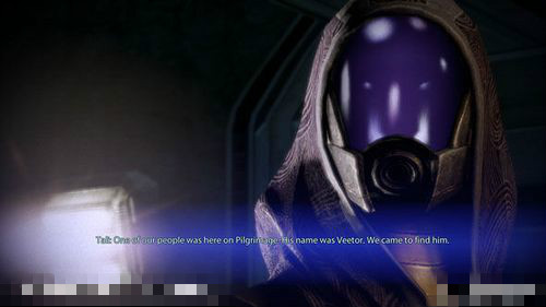 搜刮完后前往出现机器人的房间,这里没有什么危险情况,大胆穿越前往另一个门。刚过那边的大门剧情便被触发,一个老熟人出现。一代中的队友Tali出现,随同她的还有个叫Prazza的伙伴。警惕的Prazza马上举枪瞄准你们,但Tali马上认出了以前的战友制止了冲突。随后她便道出了同Prazza此行的目的是为了搜救一名叫做Veetor的伙伴。这里玩家可以选择让Tali等人自己去行动,但貌似这个选择有点2,多两把枪不是挺好。他们虽然不会直接加入你的编队但是会陪同你一起战斗。