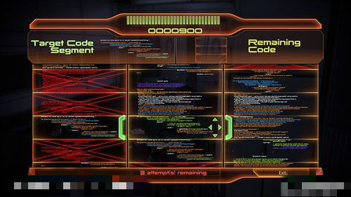 随着不断涌入的敌人被消灭,过场动画出现。终于Jacob向你透露了点消息,但Wilson拒绝透露任何事情。Jacob的消息并没有让Shepard找到任何头绪,他稍微解释了一下Lazarus项目和一个叫做Illusive Man的神秘人。没人知道这个人的底细,唯一知道的是他的组织Cerberus救活了Shepard。*这里我建议大家和Jacob多对话尽量多挖点消息出来,国外有玩家透露会稍微影响以后的剧情选择和Jacob的关系。*谈话过后去远端的大门,向右走有楼梯。这里附近有储蓄箱可以hack,hack的小游戏挺有趣的,玩家要在限定时间内把代码组合起来,看着挺难但之前多存档尝试几次就可以了