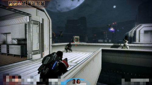 解除了空中危机后,往远端的建筑进发。这个时候Tali会联系你,告诉你Praaza和另一个队友已经撇下Tali前往Veetor的方位。貌似Praaza想在Shepard之前把Veetor转移,为什么呢?TMD又是一个疑问。先不管这么多直走前往面前的建筑,进门后搜刮点东西,左转有门。出门是个开放区域,这里下楼马上有突击机器人出现,建议回楼上隐蔽起来,这里把敌人的攻击路线限制的越狭隘越好,防止被大量敌人包抄。