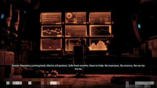 历尽千心万苦终于进入了Veetor的大楼,显然他受了伤,而且在经历了不少战斗后精神上也有一定创伤。这里玩家可以用善意选项把Veetor唤醒。可能不同的角色设定出现的选项不同,不论如何Veetor回头变透露和点消息给你,Veetor透露在他登陆后他便一直监视着星球上的举动。一个叫做收割者的神秘种族已经降落至此,它们捕捉了不少人类但意图不明。