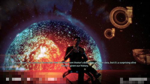 很快的Shepard一行人便登上了Cerberus组织的舰船。这里活动完全自由,搜刮 看妞 对话 发呆或者感叹一下本作之神 随你便。途中Jacob和Miranda会催促你去见老大I-Man,听他们的前进,途中会路过一个类似人工智能的全息设备,可以和它唠唠。你还会发现装甲设定已经可以使用了,闲的没事的话可以修改点设定。其它的还真没什么事情可以作。