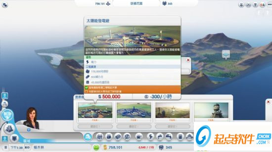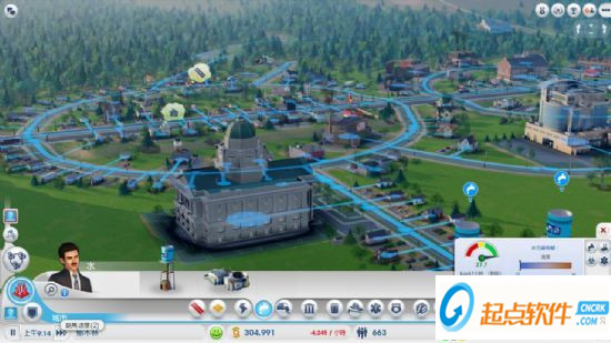 本作取消了水管,电线杆,排污管道的设计,只要建设了电厂或者水塔,都会自动连接到全城市的能源网中,再也不用担心居民因为厌恶电线杆要造一些标志建筑来提升地价了,只需要把发电厂和垃圾处理中心造的离市区远远的就行。当然,不是到处都可以建造的,还是需要连接到道路网中。另外只需要点开相应设施的界面,该能源的使用率也会在右下角很清晰地显示出来,不需要像从前那样不停地点击各处的电厂进行查看了。