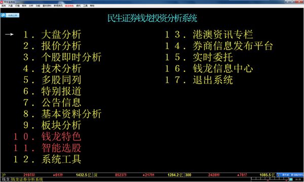 民生证券钱龙金典版,新增风险警示、退市签约、新股申购额度查询功能。