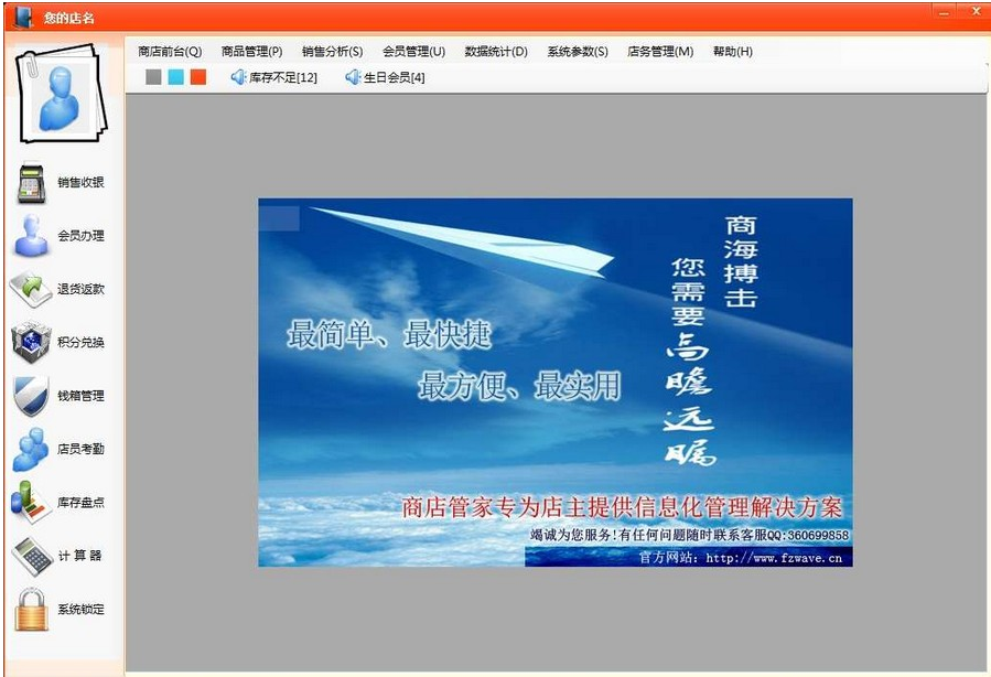 商店管家收银管理系统是专门针对POS收银、商店店主设计开发,集商品进销存、帐目管理、客户信息、备忘录于一体的店主管理软件。功能实用,操作简单!